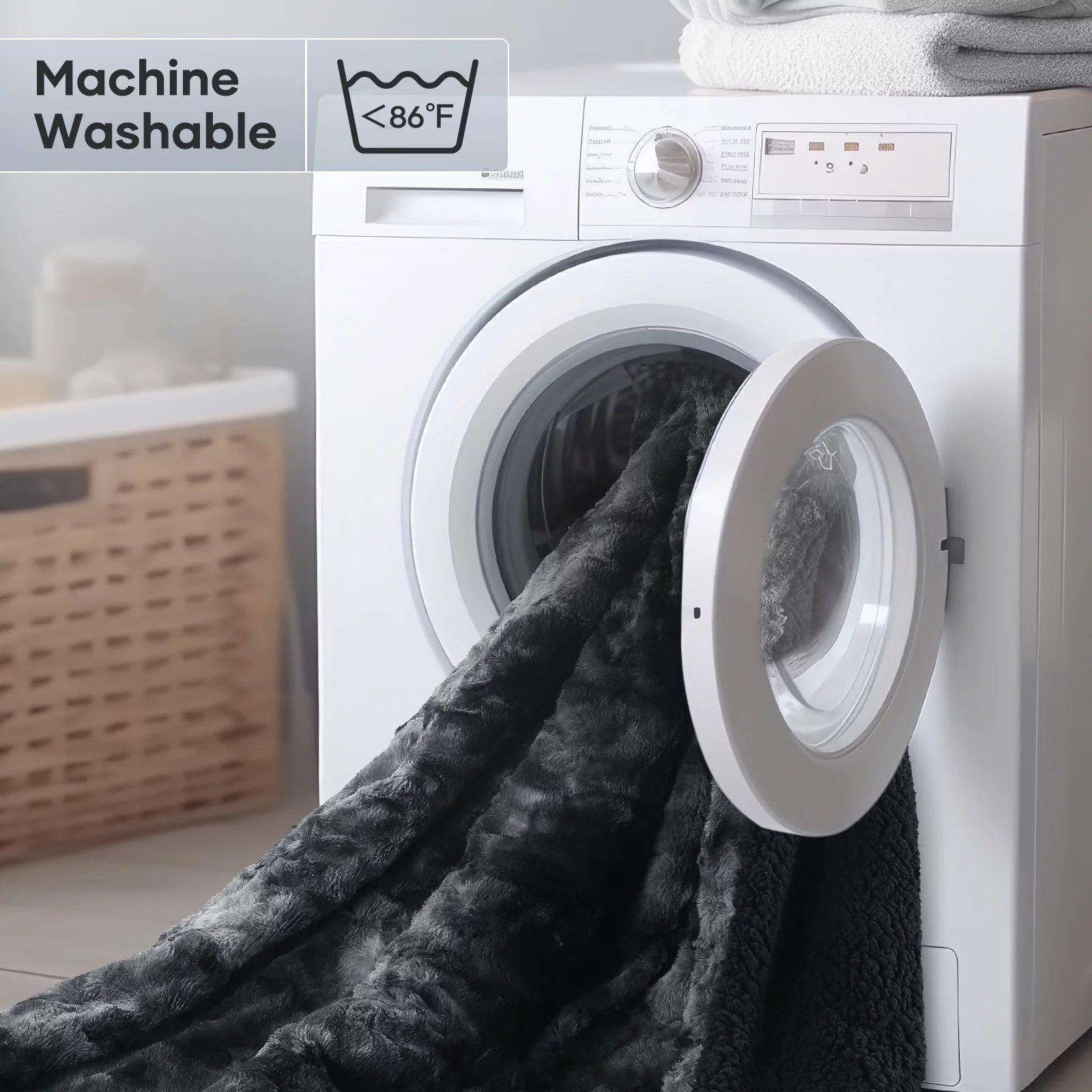 Heated Blanket Electric Throw 50" X 60", Soft Faux Fur & Shu Velvet Heated Throw Blanket, 6 Heating Levels, 4 Hours Timer, Tie-Dye off Black